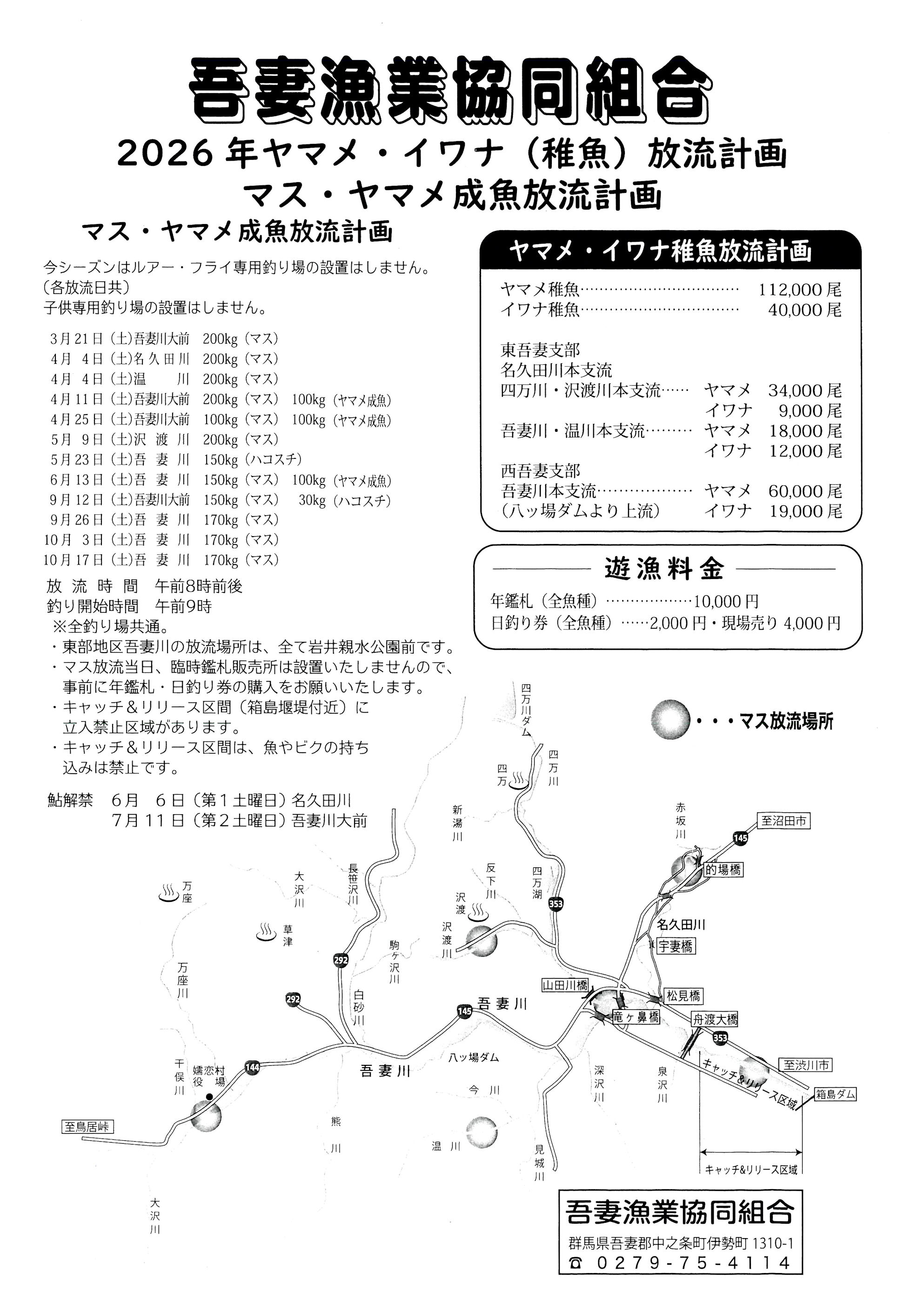 令和8年吾妻漁業協同組合釣り場情報