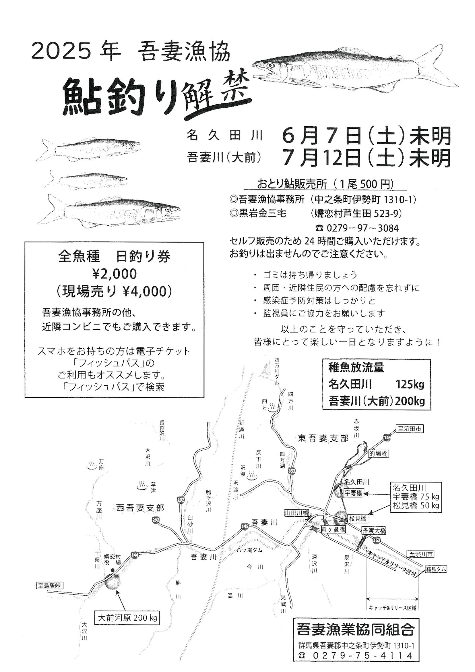令和7年吾妻漁業協同組合アユ友釣り情報