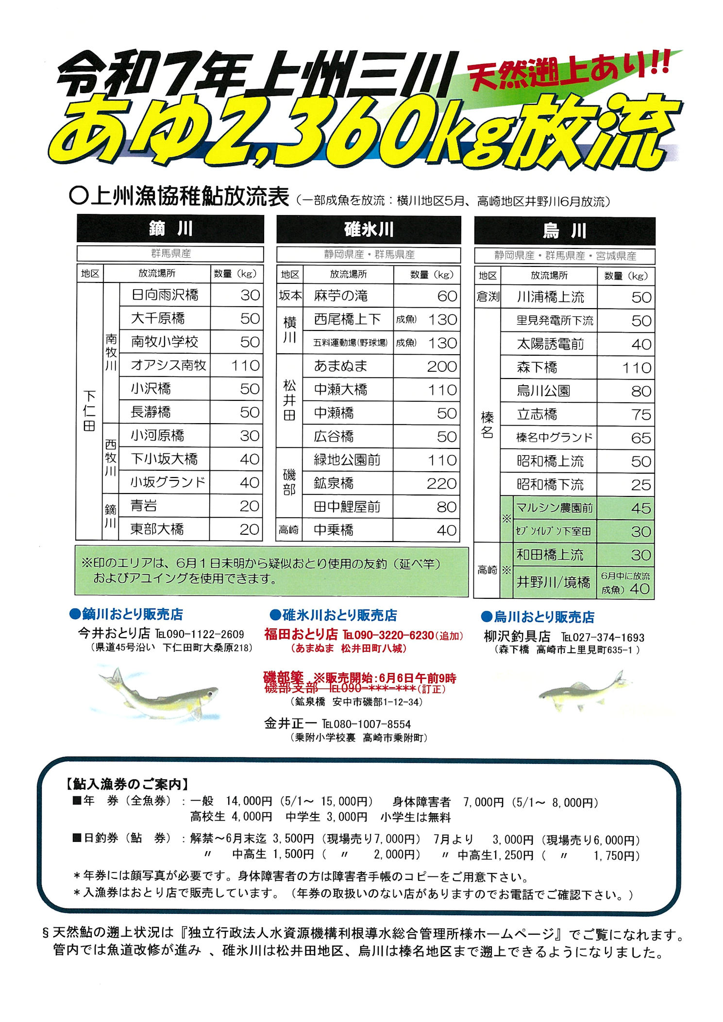 烏川・碓氷川・鏑川・西牧川・南牧川・雄川