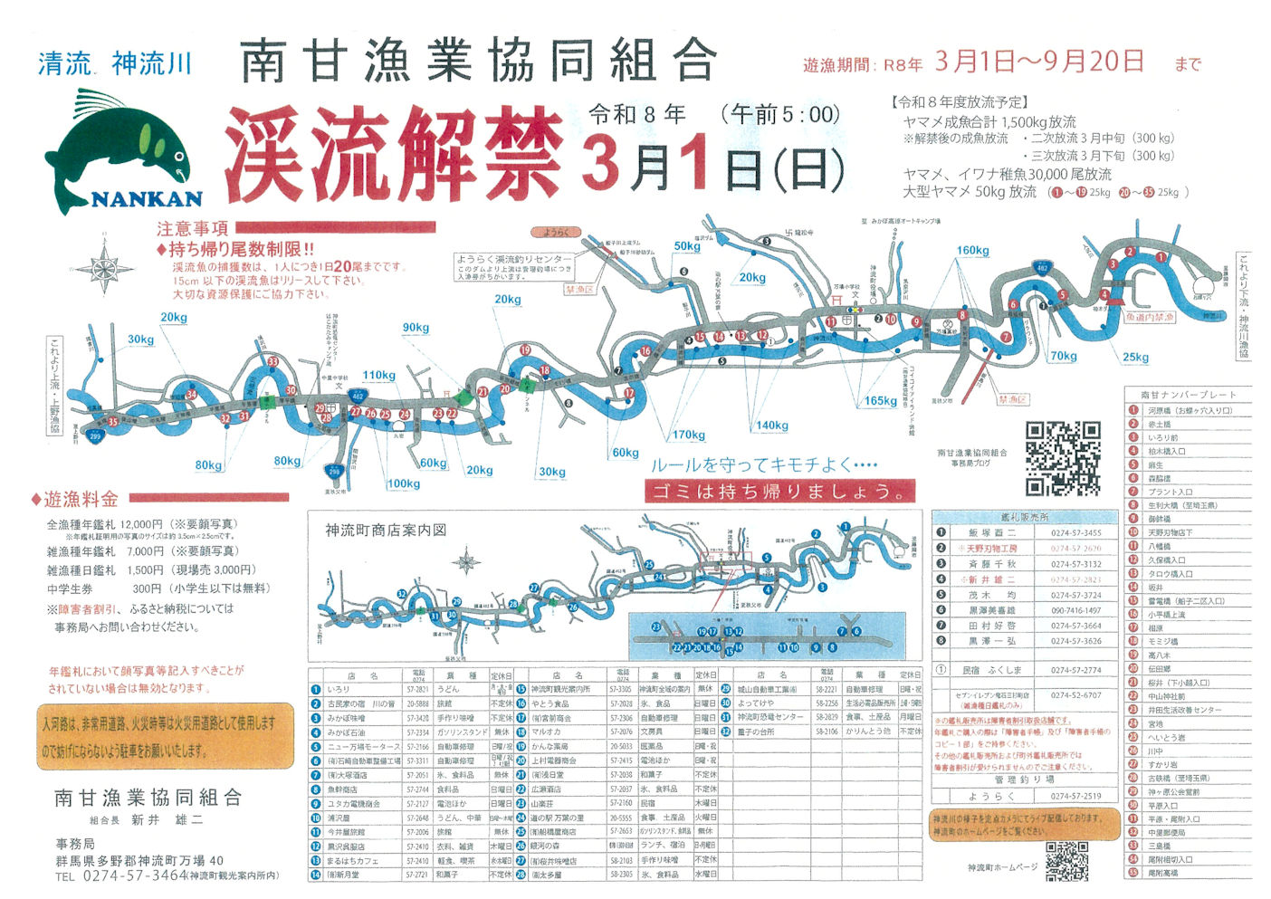 南甘漁業協同組合令和8年渓流釣り情報