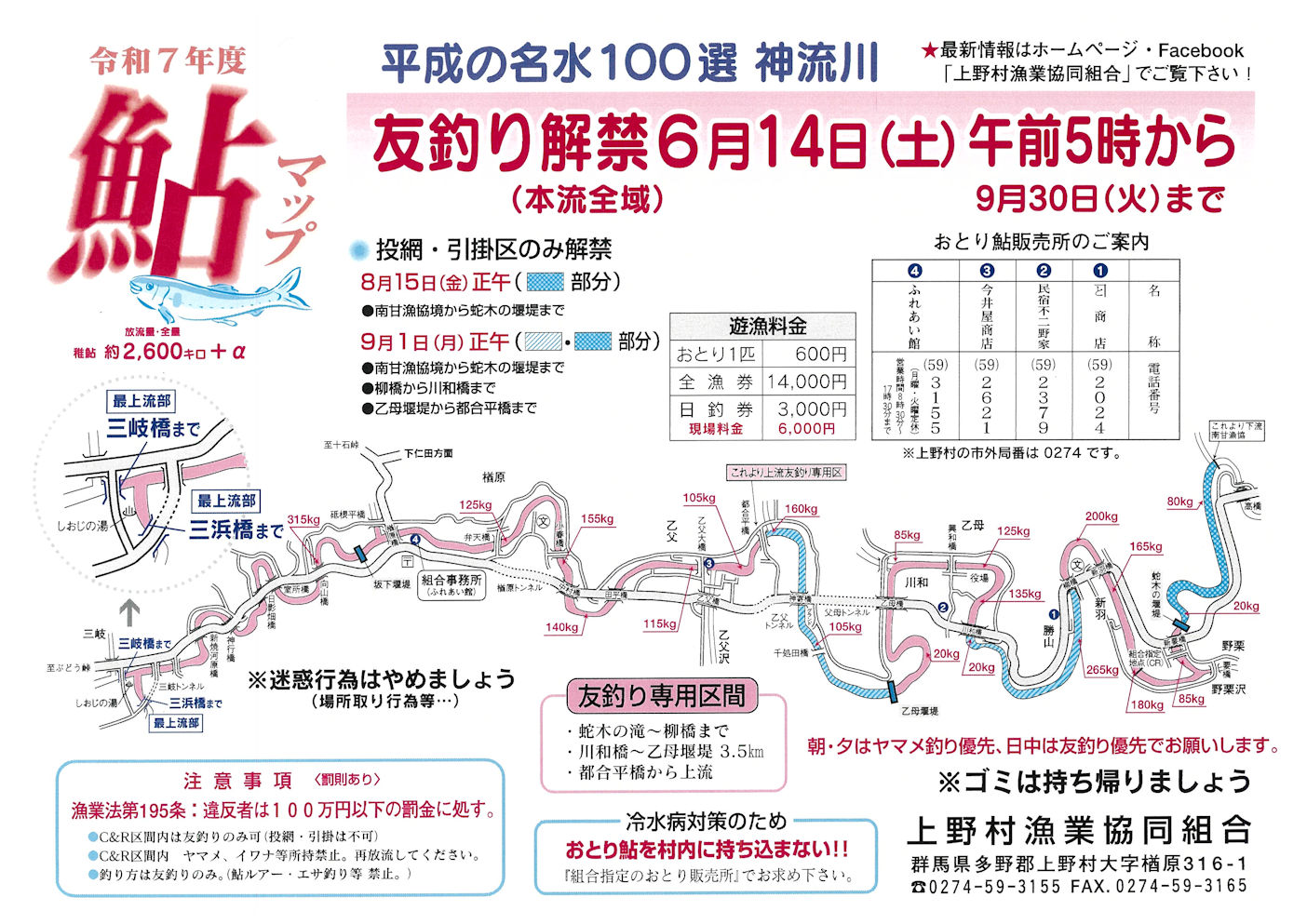 その他の情報につきましては、上野村漁協のHPからフェイスブックにジャンプしてご確認ください。